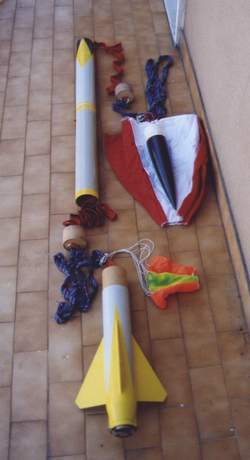 paracadute a pistone (vedi Protezione). In alto si vedeno le shock cord